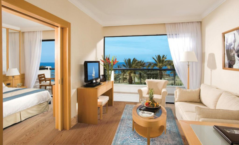 110 suites (certaines communicantes) toutes dotées de salle de bain, sèche-cheveux, téléphone, télévision, coffre-fort, minibar, climatisation, espace salon séparé (sauf en junior suite) et balcon. Certaines suites offrent une piscine privée ou un espace privatif sur la plage.