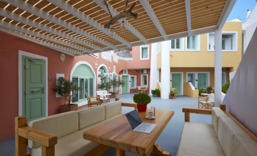22 chambres et suites, toutes équipées de bain ou douche, WC, sèche-cheveux, télévision, téléphone, petit frigo, coffre-fort et climatisation. Elles sont réparties dans 2 bâtiments : Traditional Dweelings - chambres standards et supérieures avec coin-détente donnant sur la cour intérieure. Caldera View - chambres et suites avec balcon ou terrasse et vue sur la caldera.