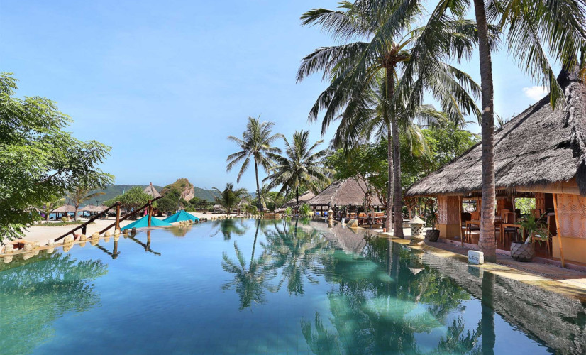 Complexe hôtelier à l'architecture traditionnelle sasak. Restaurant, bar, 3 piscines, centre de remise en forme avec spa et club pour enfants. Nombreuses possibilités d'activités sportives et nautiques. Centre de plongée.
