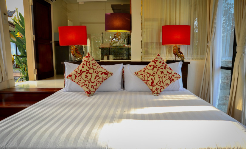 117 chambres et bungalows équipés de salle de bain complète, télévision, minibar, coffre-fort et balcon ou terrasse donnant sur le jardin.