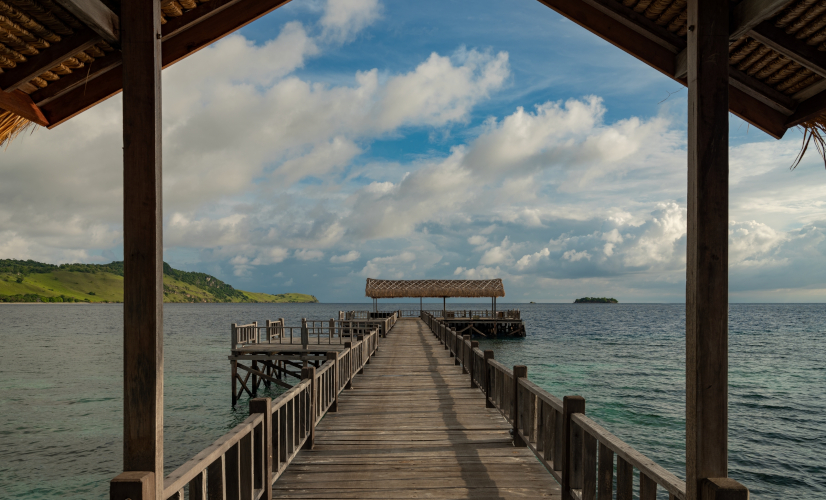 Au bord d'une plage privée, sur l’île de Seraya, à 30 minutes en bateau de l'île de Florès.