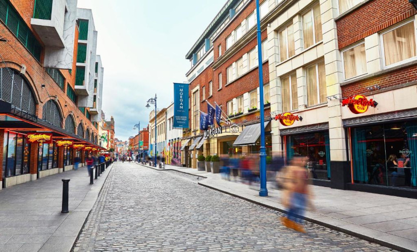 Au cœur du quartier de Temple Bar et tout près des rues commerçantes.