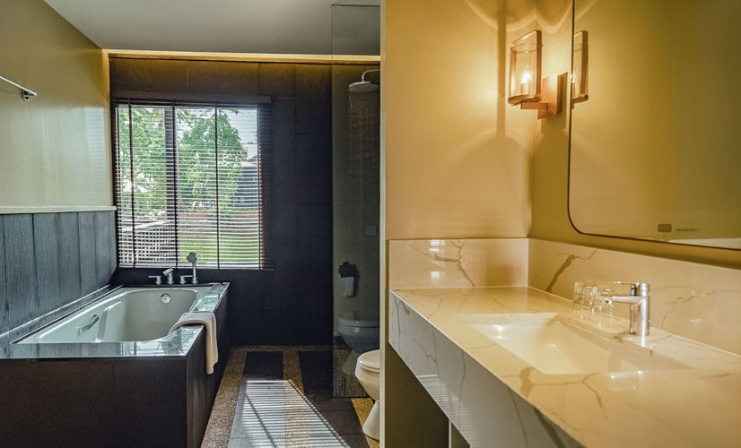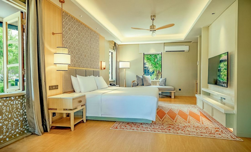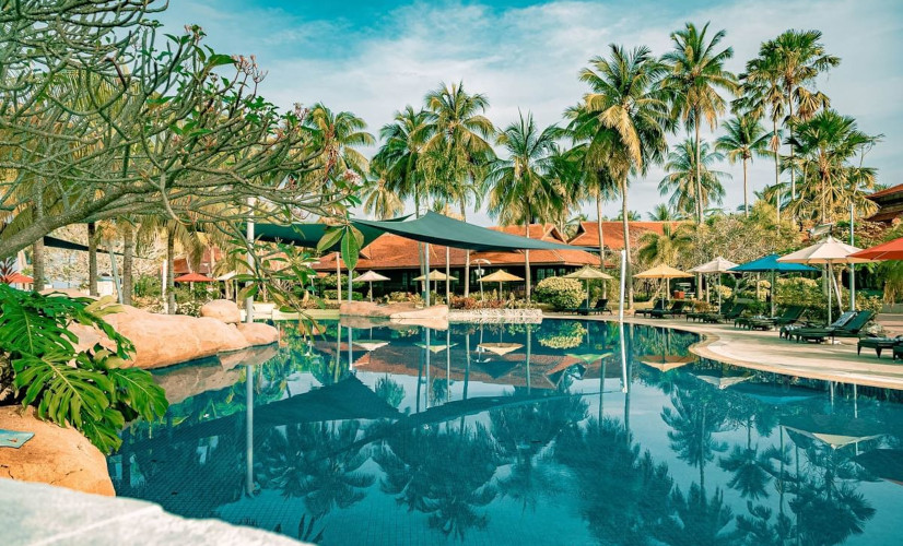 Le complexe réparti en 51 chalets est inspiré de l'architecture traditionnelle malaise et offre 2 restaurants, 2 bars, 2 piscines dont une à thème pour les enfants, fitness, spa et mini-club pour les enfants avec ferme animalière. Cours de yoga, location de bicyclettes et observation des oiseaux à l'hôtel.