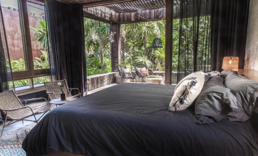 64 suites très spacieuses (46 m2 à 110 m2 – 13 catégories) décorées avec goût, sont réparties dans un domaine très bien entretenue, entre la mer et la jungle. Certaines suites bénéficient en plus de piscines et jacuzzis réservés uniquement aux guests de la catégorie en question. Elles bénéficient toutes des aménagements les plus modernes et sont équipées de douche, WC, coffre-fort, climatisation, balcon ou terrasse.