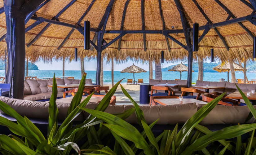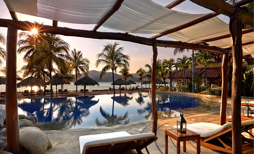 Sur une belle et grande plage privée, le long de la baie de Zihuatanejo.