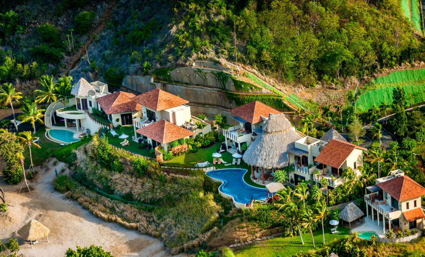 12 villas très spacieuses et aménagées avec le plus grand soin. L’ameublement intérieur privilégie les matériaux traditionnels et chaque logement est équipé de bain ou douche, WC, climatisation, minibar, coffre-fort, balcon ou terrasse. une douche extérieure et une piscine privée. La partie "résidence" disposent de plusieurs villas avec 3 ou 4 chambres.
