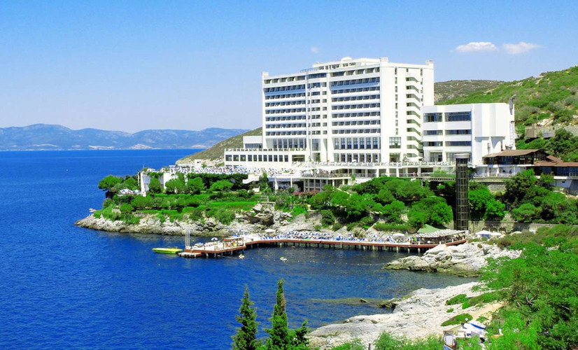 Situé sur un promontoire rocheux, un hôtel très classique dans sa conception, mais idéal pour des vacances actives.