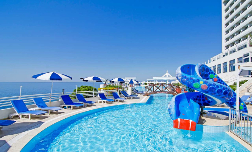 4 restaurants et 5 bars. Salon de coiffure et boutiques. 2 piscines extérieures, bassin pour enfants, piscine intérieure. Chaises longues et parasols gratuits, 2 plages privées avec pontons et une crique de sable. Court de tennis, tennis de table, billard, centre de remise en forme et spa. Mini-club pour enfant (4-12 ans) et aire de jeux.