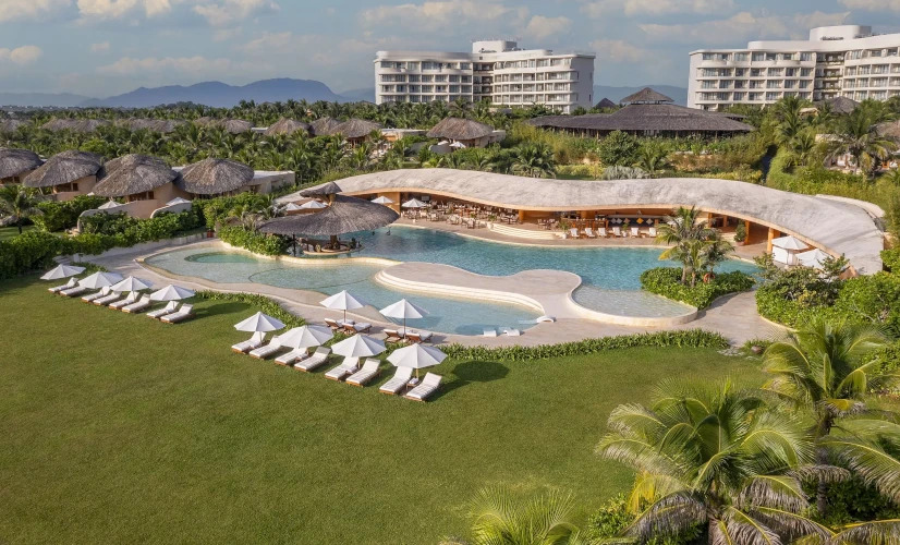 Un hôtel composé de 2 bâtiments à étages et de villas dans un jardin tropical face à la plage : 2 restaurants, bar, piscine avec espace pour les enfants et spa.