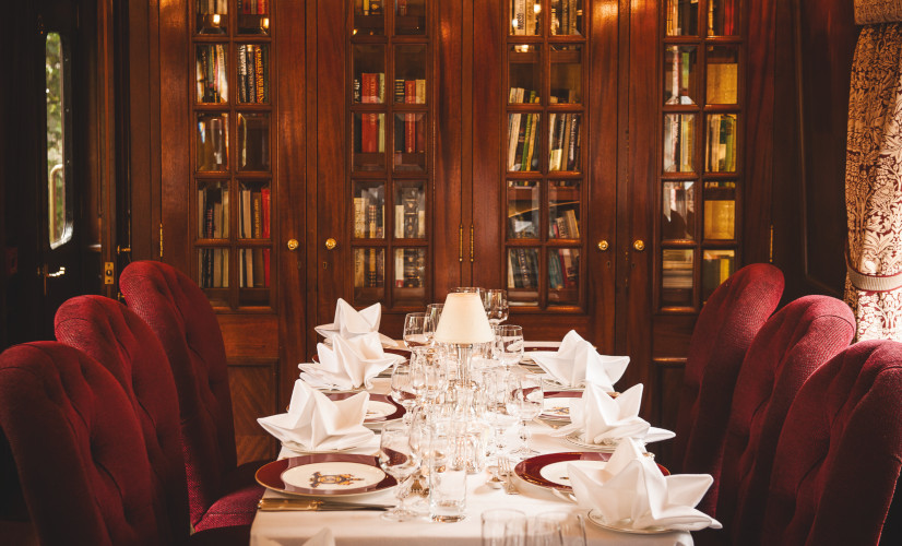 Les repas sont servis dans les voitures-restaurants lambrissées de bois d'acajou avec des tables de quatre, six ou huit personnes. Les dîners seront tantôt officiels, tantôt décontractés.